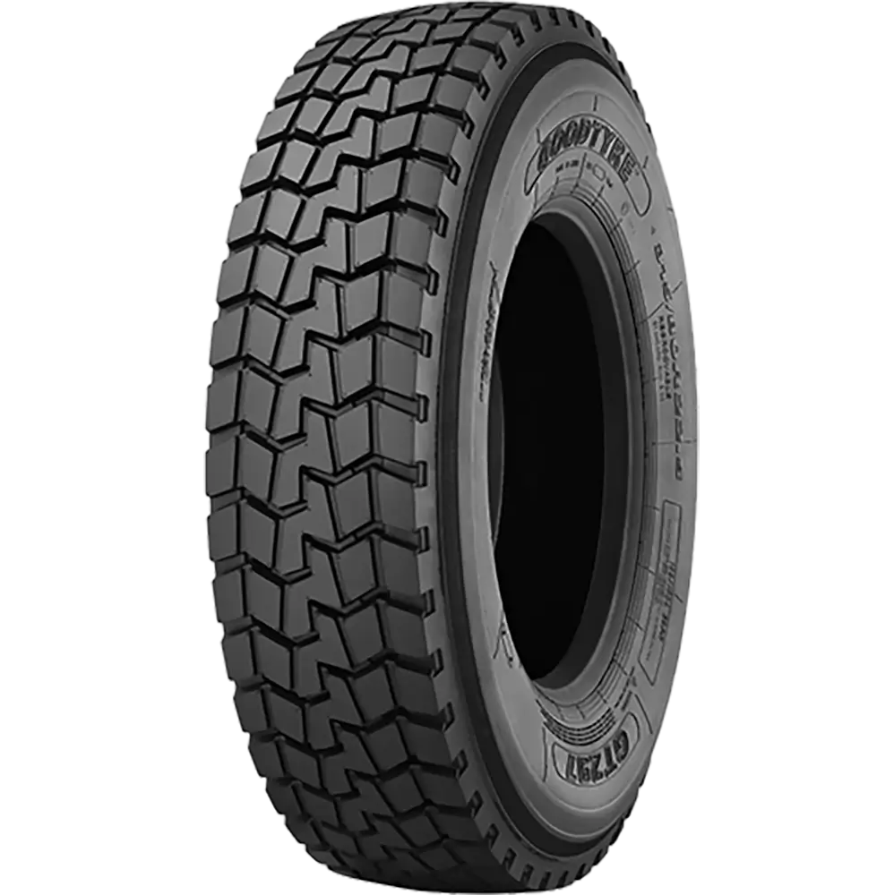 | GT02 | 12R22.5 | TL | 18 | 152/149 | L | 1085 | 300 | 15 | 9 | 3550-3250 | 930 |